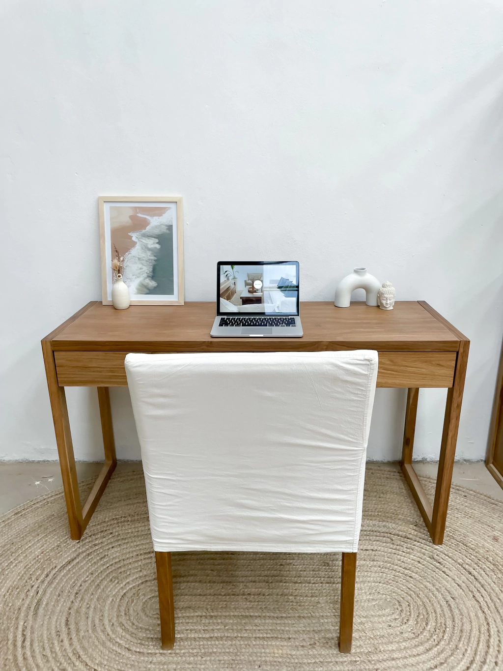 Nuestro Escritorio Luanda es realizado con Madera Petiribi, su base es de madera maciza y su tapa es enchapada. La terminación se realiza con laca poliuretanica transparente extra mate que le brinda impermeabilidad, proteccion y asegura una terminacion que destaca el diseño y la calidad del producto.