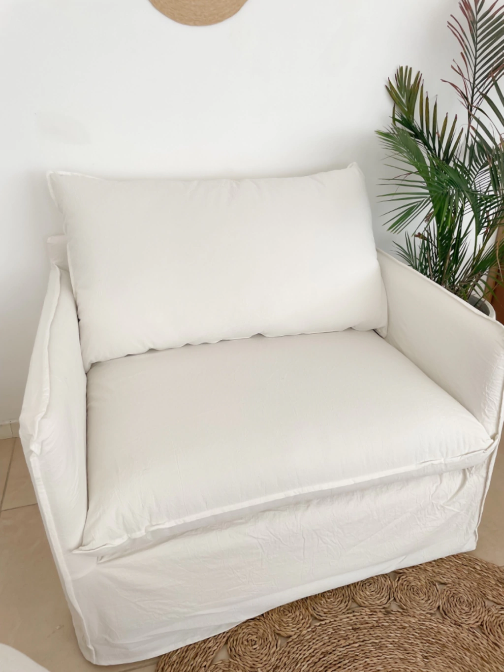 Ideal para combinar en cualquier ambiente y diseñado para brindar maxima comodidad nuestro Sofa Ghost esta realizado en su estructura con madera paraiso, placa de asiento soft de alta densidad y tapizado de lienzo.
